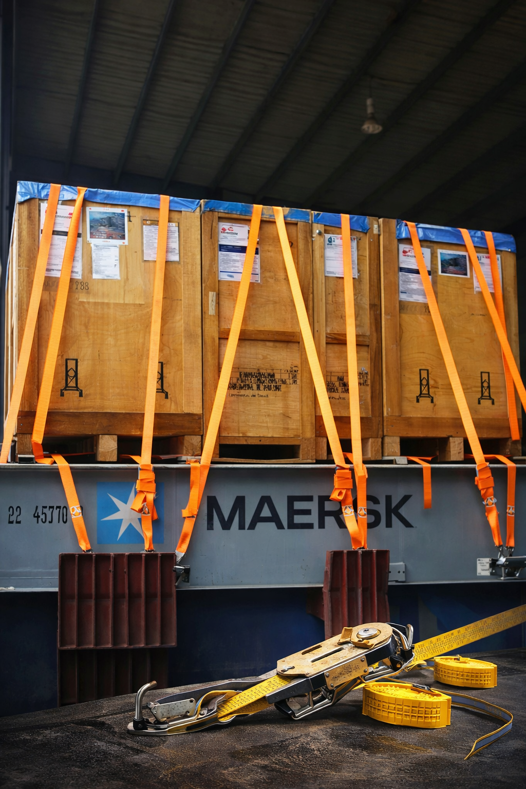 Heavy-duty ratchet belts designed for secure cargo fastening across road, rail, and sea transport.